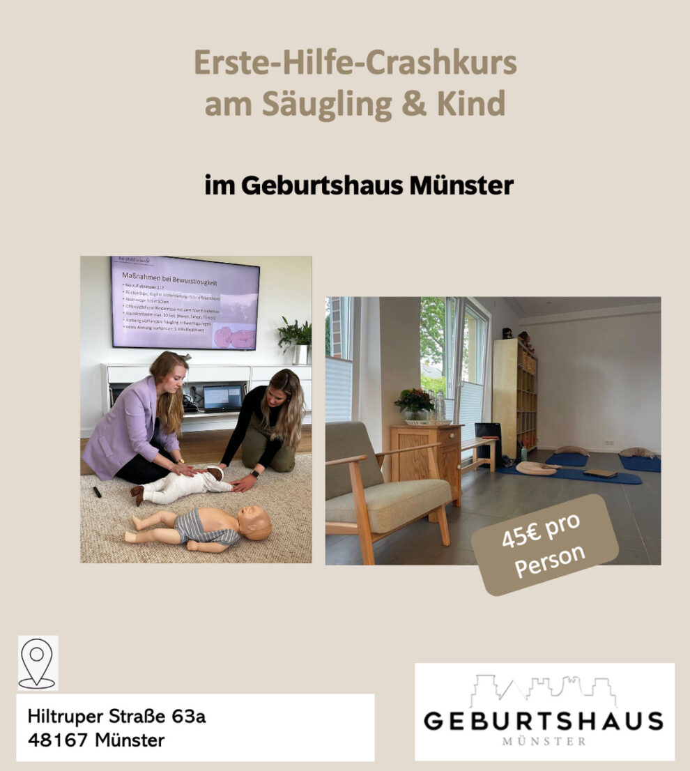 Möchtest du auch bei dem nächsten Erste-Hilfe-Crash-Kurs mitmachen? In einer Kleingruppe lernst du alles Wichtige zu den Themen: Notfallapotheke Verschlucken Verletzungen durch Verbühungen / Verbrennungen Kinderkrankheiten Notfälle im Kindesalter wie Vergiftung, Schädelhirntrauma und SIDS (plötzlicher Säuglingstod) erste Hilfe am…