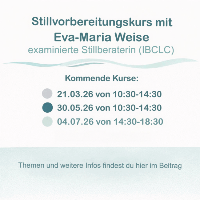 Intensiv-Geburtsvorbereitung für Paare an 2 Freitagen mit Hebamme Katharina Folgende Geburtsvorbereitungskurse werden angeboten: 09.01.-16.01.26 06.02.-13.02.26 13.03.-20.03.26 17.04.-24.04.26 jeweils 2x Freitags von 14:00 – 20:00 Uhr Die Partnergebühr beträgt 175€ und wird euch nach dem Kurs in Rechnung gestellt. Bitte achtet darauf, dass ihr zum Zeitpunkt des Kurses möglichst zwischen der 31. (30+0 bis 30+6)…